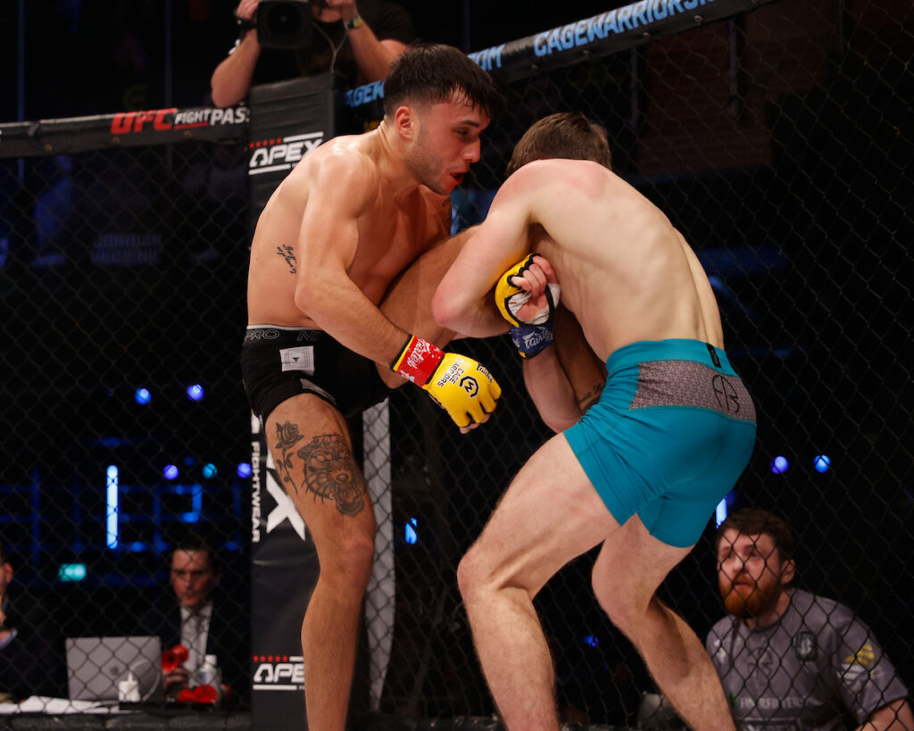 That ‘unknown’ wasn’t just anybody either, it was highly-touted Italian prospect Alessandro Giordano. A stand-up stud, he gave the Englishman everything he could handle on the feet, but it wasn’t enough. Fletcher was determined to make his comeback a successful one, and did so showcasing an aspect of his game we’d yet to see in Cage Warriors.
